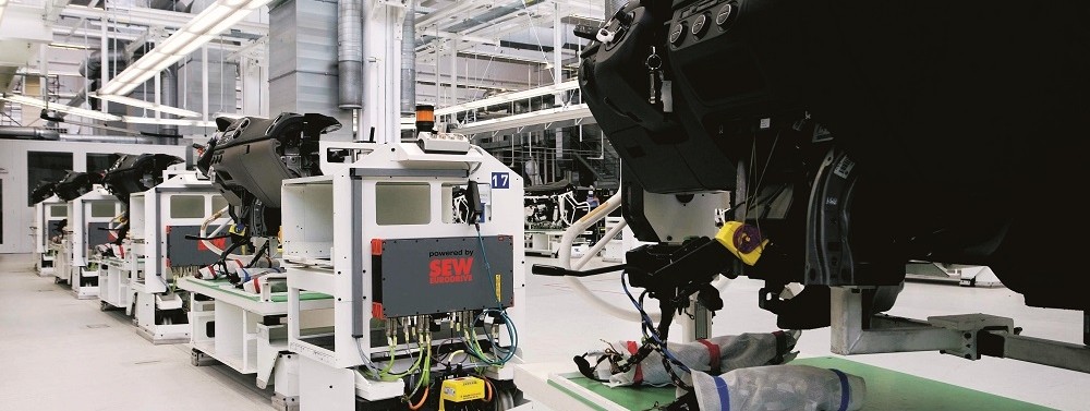 Indukcyjne rozwiązania AGV dla dużych obciążeń umożliwiają zaplanowanie zakładu bez barier. Nasze rozwiązanie systemowe obejmuje poszczególne pojazdy, zasilanie, komunikację WLAN oraz nawigację i koordynację pojazdów. Ułożone w podłodze przewody sterownicze MOVITRANS® tworzą bezstykowy i, tym samym, odporny na zużycie oraz niewymagający konserwacji system przesyłu energii.