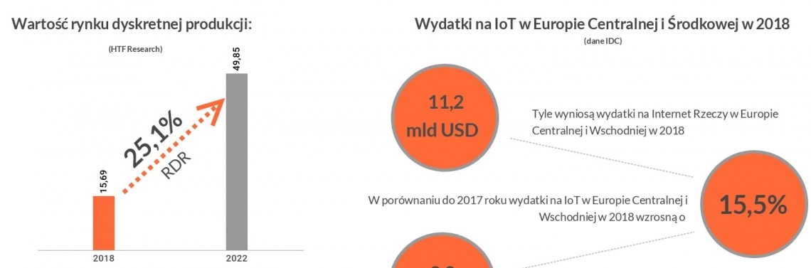 Rynek dyskretnej produkcji w najbliższych latach będzie przeżywał prawdziwy boom na rozwiązania Internetu Rzeczy. Jak wynika z raportu „Globalny rynek Internetu Rzeczy w dyskretnej produkcji”, do 2022 roku wydatki na IoT związane z dyskretną produkcją będą rosły 25,1% rok do roku.