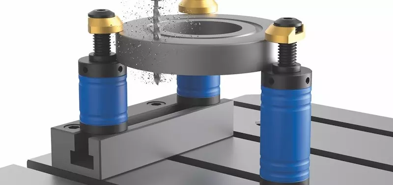 Elastyczne elementy mocujące pozwalają na szybki i solidny montaż, i co więcej, można je łatwo i szybko przymocować do stołu maszynowego za pomocą rowków teowych lub też bezpośrednio w otworach gwintowanych. Mocowanie, używane w połączeniu ze śrubą naprężającą z pierścieniem zaciskowym norelem (04395-11), pozwala uniknąć zarysowania lub uszkodzenia elementów metalowych dzięki miękkim, wymiennym wkładkom mosiężnym.