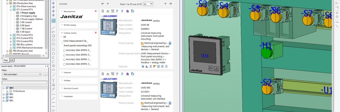 Dane produktów - tak jak w przypadku zilustrowanych tu komponentów firm Janitza i Noark - mogą być łatwo wstawiane do projektu EPLAN.