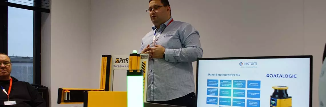 Sesja „Kurtyny – Skanery – Maty – Rozwiązania czułe na punkcie bezpieczeństwa” poprowadził Paweł Kowalczyk, specjalista ds. technicznej i handlowej obsługi klienta w firmie Instom. Przedstawił on rozwiązania bezpieczeństwa firmy ReeR i DataLogic i Gamma System.
