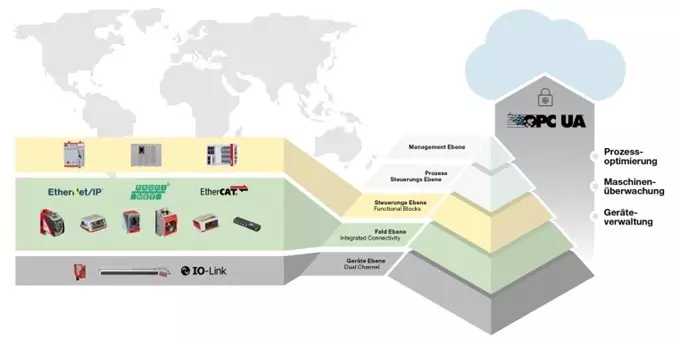 Wartość ta wynosi na ogół od 90 do 95 procent i może być monitorowana w celu wykrycia odchyleń podczas pracy spowodowanych, na przykład, przez zanieczyszczenia lub uszkodzenia mechaniczne. Zdalny monitoring może być również realizowany w formie dodatkowego kanału komunikacyjnego poprzez OPC UA. Można wykorzystać do tego celu sterowanie, ale czujniki Leuze oferują znacznie wygodniejsze rozwiązanie, ponieważ dostęp do nich można uzyskać bezpośrednio przez OPC UA. W efekcie operatorzy systemów mogą monitorować swoje urządzenia równolegle do trwającego procesu. Dzięki temu otrzymują w czasie rzeczywistym informacje o wydajności systemu. W razie potrzeby bez żadnych ograniczeń dane te mogą być również przesyłane do chmury.