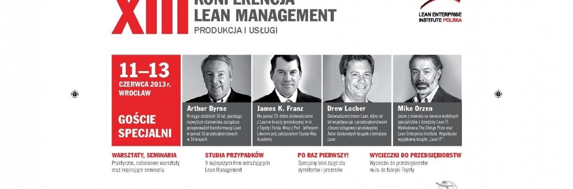 W dniach 11-13 czerwca 2013 r. już po raz trzynasty odbędzie się Międzynarodowa Konferencja Lean Management. Do Wrocławia przyjadą najwięksi, światowej klasy praktycy i specjaliści w dziedzinie zarządzania.