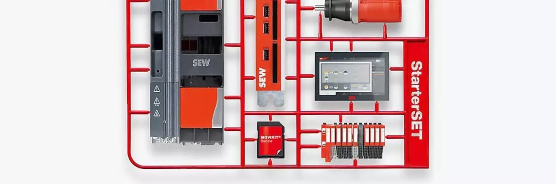 Właśnie w tym celu opracowaliśmy w SEW-EURODRIVE zestaw StarterSET. Składa się on z podstawowych komponentów obejmujących hardware oraz software, które są specjalnie dopasowane i wstępnie dobrane dla określonego typu maszyny. Zestaw StarterSET nadaje się do bezpośredniego zastosowania jako pakiet podstawowy z możliwością elastycznego dostosowania oraz indywidualnej rozbudowy.