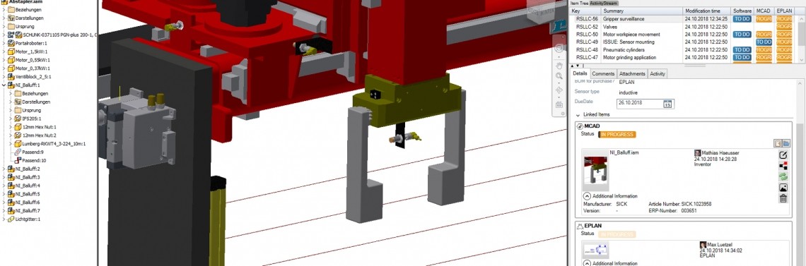 Dyscypliny techniczne muszą ze sobą współgrać w erze Industry 4.0. Ale jak można pokonać istniejące ograniczenia? Syngineer pozwala na wzajemną komunikację projektantów z działów inżynierii elektrycznej i mechanicznej. To oparte na chmurze obliczeniowej narzędzie zapewnia lepszą komunikację, a równocześnie optymalizuje współpracę interdyscyplinarną przy projektowaniu maszyn i systemów. Dla wielu projektantów jednym z głównych wyzwań jest zdobywanie i przekazywanie informacji.